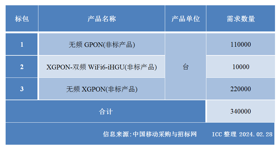 此前報(bào)道,本項(xiàng)目采購(gòu)智能家庭網(wǎng)關(guān)產(chǎn)品,共劃分成3個(gè)標(biāo)包,采購(gòu)總規(guī)模為34萬臺(tái)。其中GPON無頻網(wǎng)關(guān)11萬臺(tái),10GPON有頻網(wǎng)關(guān)1萬臺(tái),10GPON無頻網(wǎng)關(guān)22萬臺(tái),項(xiàng)目預(yù)估總采購(gòu)金額4288.35萬元(含稅)。