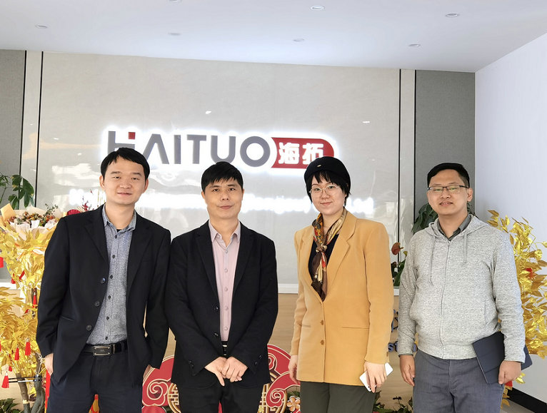 海拓儀器總經(jīng)理劉冬喜(左二)介紹訊石采訪