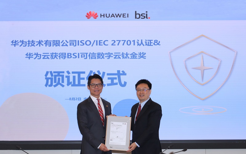 BSI亞太區(qū)董事總經(jīng)理林勁為華為云鈦金獎(jiǎng)?lì)C證