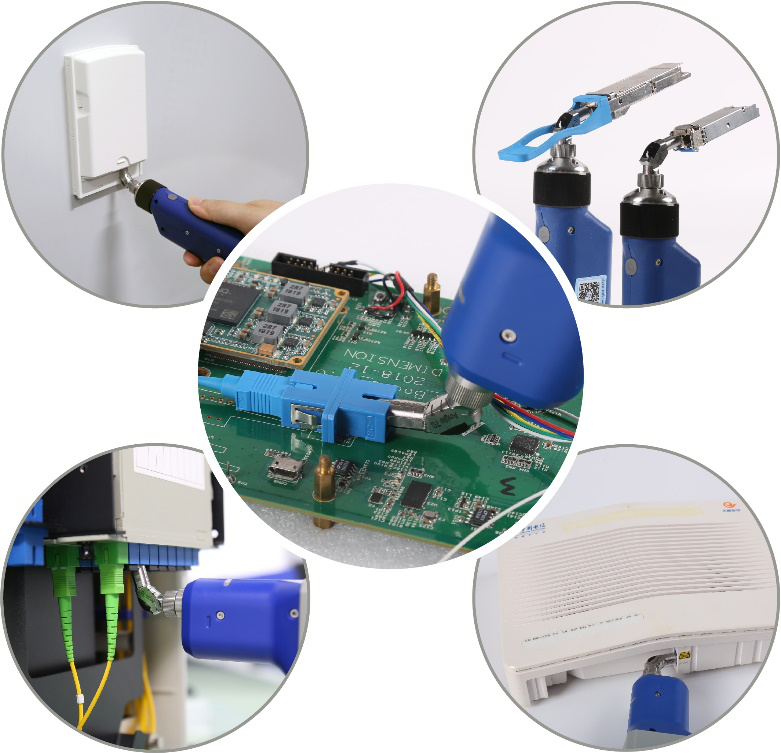 為了解決這些特殊結(jié)構(gòu)或特殊應(yīng)用場景的光纖端面檢測難題,Dimension經(jīng)過科技攻關(guān),創(chuàng)新性地設(shè)計(jì)推出了系列手持式光纖端檢儀專屬的70度彎曲接頭,它們能夠兼容Dimension旗下所有手持式端檢儀,采用纖薄金屬結(jié)構(gòu)并且可以360度旋轉(zhuǎn),使用起來靈活方便,徹底解決了特殊結(jié)構(gòu)或應(yīng)用場景下的光端面檢測問題,給用戶帶來前所未有的便利體驗(yàn),是目前最理想的彎型接口解決方案。廣泛的應(yīng)用于光網(wǎng)絡(luò)設(shè)備制造、數(shù)據(jù)中心、FTTx、運(yùn)營商光網(wǎng)絡(luò)傳輸中心、企業(yè)網(wǎng)絡(luò)機(jī)房等場合的光纖端面檢測中。