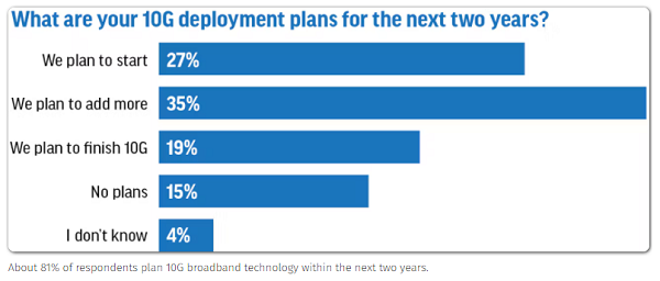 約81%的受訪者計劃在未來兩年內(nèi)部署10G寬帶技術(shù)