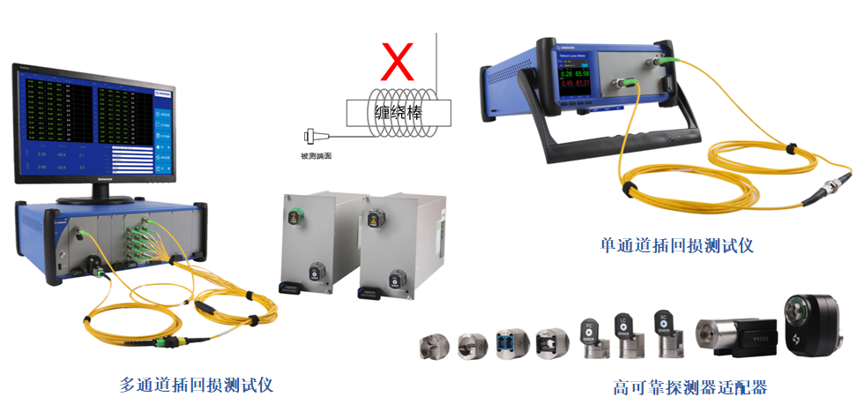 維度科技的單、多芯插回?fù)p測試儀采用高穩(wěn)定度光源和高精度光功率計,實現(xiàn)免纏繞的回?fù)p測試和高速的插入損耗測試。單次單波長損耗檢測時間小于0.5s,最低能夠?qū)崿F(xiàn)-75dB的回波損耗探測。單模與多模共6個測試波長(多 模:850nm、1300nm,單模:1310nm、1490nm、1550nm、1625nm),優(yōu)化設(shè)計的積分球既可以測量密集多通道 MTP/MPO連接器的損耗,也可以測量雙聯(lián)LC等器件上的損耗。
