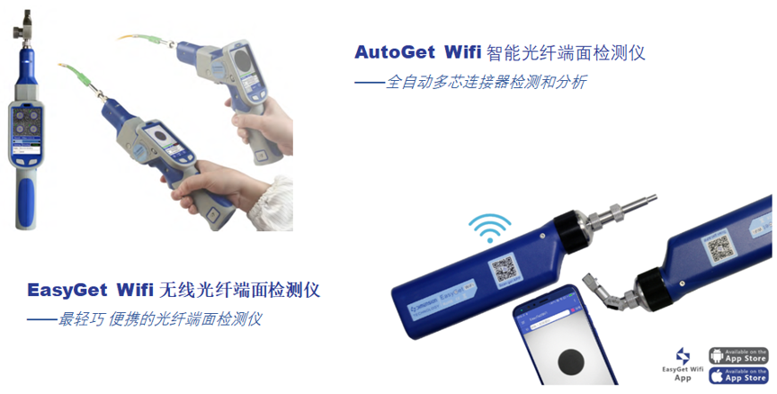 維度科技充分理解現(xiàn)場技術(shù)人員光纖端面檢測的辛苦和痛點,目前維度的便攜式端檢儀已經(jīng)形成系列化、一體化、智能化,包括AutoGet Wifi智能光纖端面檢測儀、EasyGet Wifi無線光纖端面檢測儀、EasyGet Wifi MT無線光纖全端面檢測儀等。AutoGet Wifi是業(yè)界首款可折疊全功能手持式智能光纖端檢儀,提供了一種完全自動化的智能光纖端面檢測解決方案,可對單芯、MPO及其他多光纖連接器進(jìn)行全自動的檢測、分析和判斷,是目前該領(lǐng)域內(nèi)最理想的解決方案,引領(lǐng)行業(yè)發(fā)展的新高度。