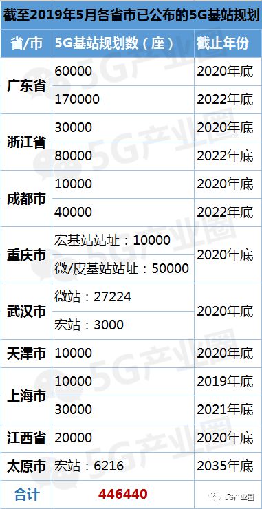 廣東、浙江、江西、上海、天津、重慶、武漢、成都、太原共9省/市政府發(fā)布了5G基站規(guī)劃,合計將建超過44.6萬個5G基站。