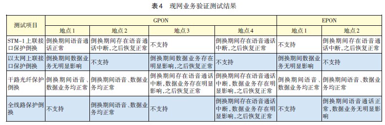 b) 現(xiàn)網(wǎng)保護(hù)倒換測試效果較差。建議PON技術(shù)用于安全性要求較低或自身光纜線路無保護(hù)路由的基站,如室內(nèi)分布系統(tǒng)等。