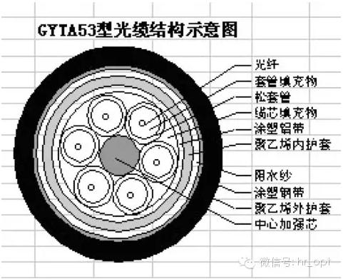 GYTA53(金屬加強(qiáng)構(gòu)件、松套層絞填充式、鋁-聚乙烯粘結(jié)護(hù)套、縱包皺紋鋼帶鎧裝、聚乙烯套通信用室外光纜)光纜的結(jié)構(gòu)是將單模或多模光纖套入由高模量的塑料做成的內(nèi)填充防水化合物松套管中。纜芯的中心是一根金屬加強(qiáng)芯,對于某些芯數(shù)的光纜來說,金屬加強(qiáng)芯外還擠包一層聚乙烯(PE)。松套管(和填充繩)圍繞中心加強(qiáng)芯絞合成緊湊和圓形的纜芯,纜芯內(nèi)的縫隙充以阻水化合物。涂塑鋁帶縱包后擠一層聚乙烯內(nèi)護(hù)套,雙面涂塑鋼帶縱包后擠制成聚乙烯外護(hù)套成纜。