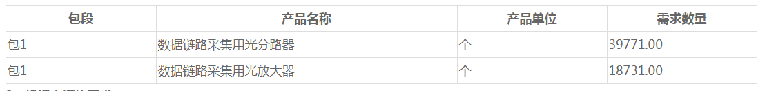 ICCSZ訊 (編輯:Nicole)中國移動發(fā)布2019年至2020年數(shù)據(jù)鏈路采集設備集中采購招標公告。該項目采購產(chǎn)品為數(shù)據(jù)鏈路采集用分光器和光放大器,預估采購規(guī)模數(shù)據(jù)鏈路采集用光分路器約39771套和光放大器約18731套,采購滿足期為1年。