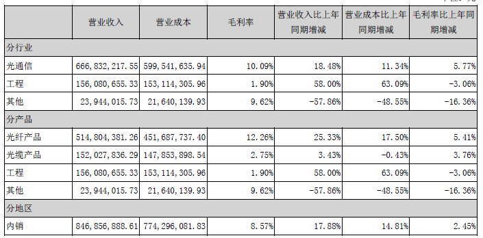 鑫茂科技是中國北方地區(qū)大型光纖光纜生產(chǎn)銷售企業(yè),專注于光通信業(yè)務(wù),報告期內(nèi),光通信業(yè)務(wù)營收6.67億元,同比增長18.48%,毛利率10.09%。并且形成2,400萬芯公里光纖、400萬芯公里光纜的生產(chǎn)能力,其中正在實施的山東濟南光纖預(yù)制棒項目設(shè)計生產(chǎn)能力為500噸,將形成“棒、纖、纜”產(chǎn)業(yè)鏈規(guī)模生產(chǎn)經(jīng)營規(guī)模優(yōu)勢。
