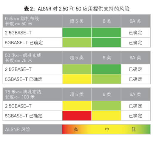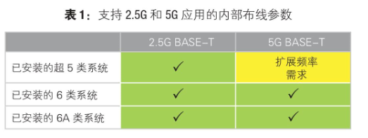 由表1和表2可知,Cat5e,Cat6類布線已經(jīng)不能滿足2.5/5G Base-T的應(yīng)用了。