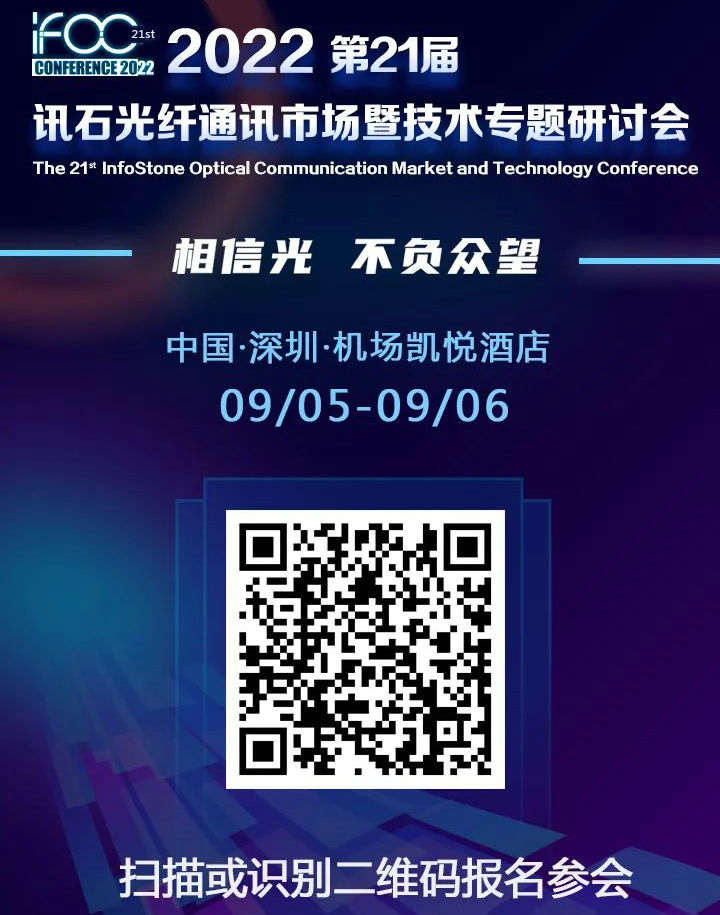 ICC訊 2022年9月5-6日,第21屆訊石光纖通訊市場暨技術專題研討會(IFOC 2022)邀您共聚深圳機場凱悅酒店(地址:深圳市寶安國際機場空港八道8-12號),從七大專業(yè)論題深入探討覆蓋整個光通訊產(chǎn)業(yè)的全面內容,層層遞進式分析技術發(fā)展趨勢,深度融入熱點話題為行業(yè)發(fā)展注入新鮮力量。