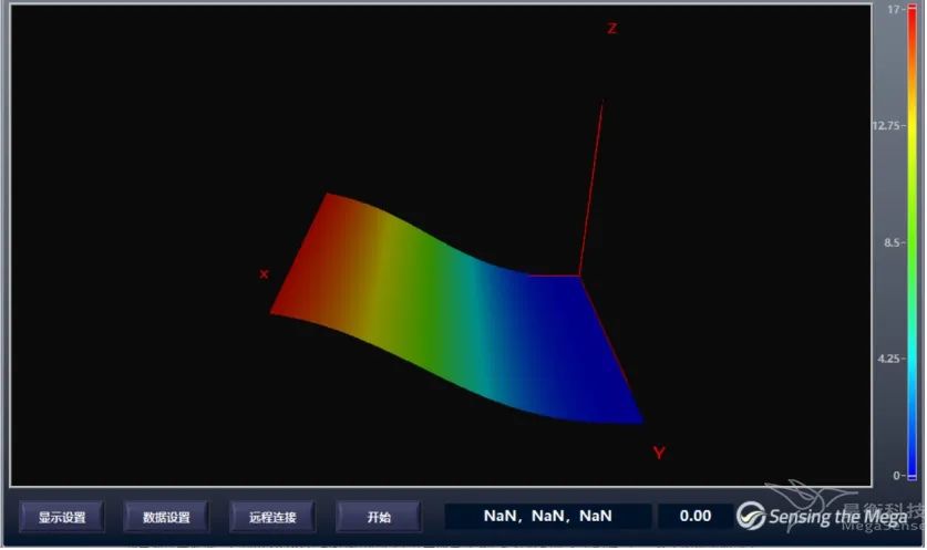 為展示新功能,昊衡科技向大家演示了板狀結(jié)構(gòu)形變監(jiān)測(cè)與空間形態(tài)實(shí)時(shí)檢測(cè)。團(tuán)隊(duì)在板狀結(jié)構(gòu)表面布設(shè)分布式光纖傳感器,結(jié)合自研OFDR設(shè)備(OSI)高分辨、高精度、分布式傳感特性,獲得板狀結(jié)構(gòu)上各處應(yīng)變信息,并建立應(yīng)變和空間曲率算法,實(shí)現(xiàn)了板狀結(jié)構(gòu)空間形態(tài)擬合與重構(gòu)。