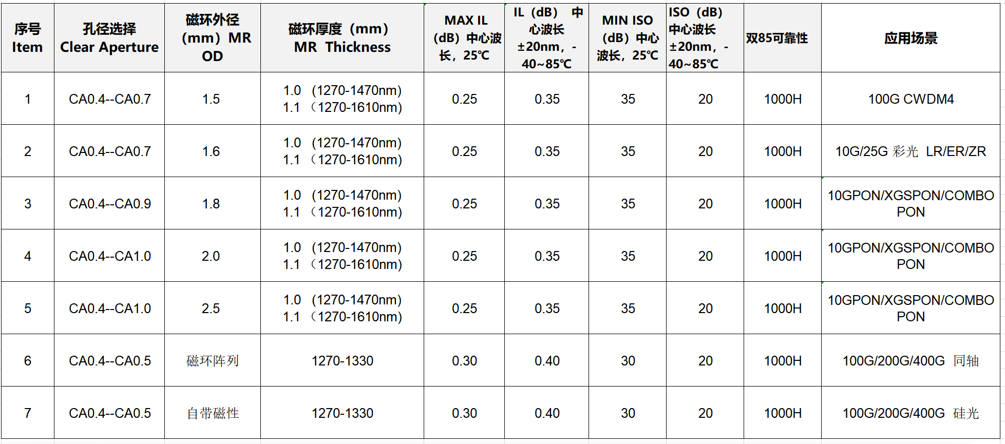 產品的特點:各種通訊波長,各種孔徑,各種尺寸形狀可選, 應用場景多樣(2.5G-400G光模塊,LR、ER、ZR)