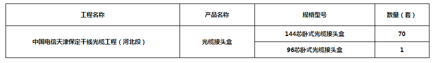 主要采購中國電信天津保定干線光纜工程(河北段)所需的光纜接頭盒產(chǎn)品,包括: