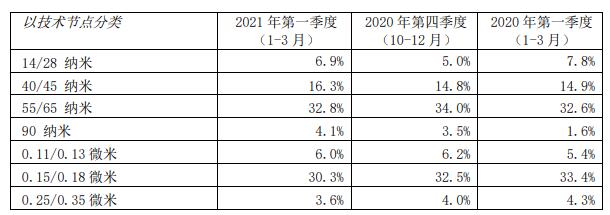 以地區(qū)分類,2021年一季度,中芯國際北美洲收入占27.7%,環(huán)比持平,同比增長(zhǎng)8.6%;中國大陸及香港占55.6%,環(huán)比下降0.89%,同比下降9.7%;歐洲及亞洲占16.7%,環(huán)比增長(zhǎng)3%,同比增長(zhǎng)29%。
