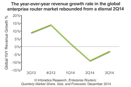 ICCSZ訊 2014年12月9日,市場調(diào)研公司Infonetics發(fā)布其三季度企業(yè)路由器報告。