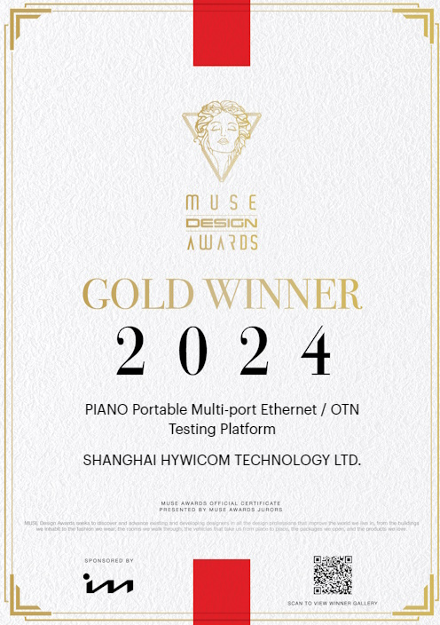 ICC訊 CIOE 2024于9月11-13日在深圳國際會展中心(寶安新館)舉行,在本屆CIOE上,海回科技聯(lián)合富泰科技重磅推出全球首創(chuàng)的便攜式多端口800G測試平臺 — PIANO。而就在展會前夕,素有“設(shè)計界奧斯卡”之稱的美國繆斯設(shè)計獎(MUSE Design Awards)公布了2024年度獲獎名單,來自?;乜萍嫉? PIANO 便攜式多端口 800G 以太網(wǎng)/OTN 測試平臺,以其卓越的工業(yè)設(shè)計與創(chuàng)新的設(shè)計理念,榮獲2024年度繆斯設(shè)計金獎(GOLD WINNER)!