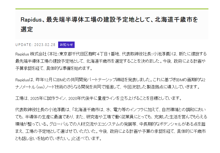 據(jù)北海道政府稱,迄今為止,北海道最大的企業(yè)投資約為2300億日元,如果按計(jì)劃進(jìn)行,Rapidus的規(guī)模將超過(guò)20倍。