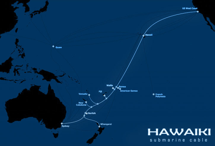 據(jù)介紹,這條長達15000千米的海底光纜系統(tǒng)途徑南太平洋島國和夏威夷,初始設(shè)計容量達到43.8Tbps,總投資額達3億美元。