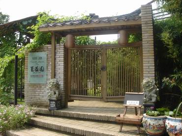 進(jìn)入花卉世界,長(zhǎng)長(zhǎng)的街道兩旁滿(mǎn)是花房,緩步走在街道上,享受花草植物散發(fā)著的迷人芳香。街道盡頭就是今天的目的地--亙益園。放眼望去竹籬笆的外墻上爬滿(mǎn)了藤蘿,觸目是滿(mǎn)滿(mǎn)的綠意。推開(kāi)門(mén)扉,才得以窺見(jiàn)里面的世界。碎石鋪就的小路左邊是一排竹篾編成的籬笆,頭頂上亦搭了竹架,全都爬滿(mǎn)了羅漢果(又稱(chēng)雞蛋果)的綠藤,瓜藤間若隱若現(xiàn)拳頭大的果實(shí)。