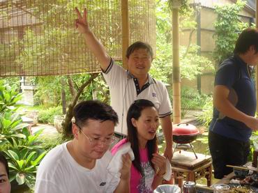 大家的一番努力下,將近二十個(gè)菜擺上了桌,有葷有素,涼菜炒菜燉菜湯羹,色香味具全。全部人員落座,先是一杯冰啤慶祝眾人的努力成果,緩和一下做菜時(shí)的緊張氣氛,才開(kāi)始品嘗每個(gè)人的得意之作。提箸夾菜送入口中,每人臉上都是期待?!昂贸?!”“這個(gè)不錯(cuò),誰(shuí)做的?”......贊譽(yù)之聲不斷,期待變成了滿(mǎn)足。