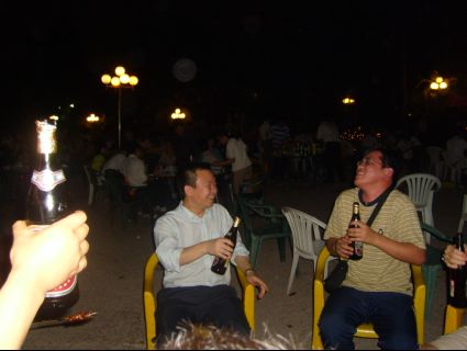 大約四點半的時候,我們的隊伍已經(jīng)抵達海上世界,南山腳下,南山已經(jīng)被我們徹底征服了。下山后,我們開始了下一個項目——燒烤。大家似乎早已忘記了滿身的疲憊,又開始忙碌起來。工作人員為我們支好爐子,在本次活動的策劃者朱朱的吩咐下,大家自覺地分組,自己拿好食物。有的同事可能是餓急了,火腿腸還沒來得及動叉子,就被他們一掃而光了,更可惡的是還要跑去別組"覓"食,那番狼吞虎咽的樣子把大家都逗樂了。"cheers",男同胞們拿起酒杯,一個個激動不已,碰杯后一飲而盡。而女同胞們則一邊在悠閑地品嘗自己的勞動成果,一邊欣賞著海邊的美景,陶醉其中。