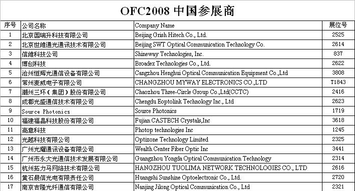 文章標(biāo)題:OFC2008 中國(guó)參展商名單<