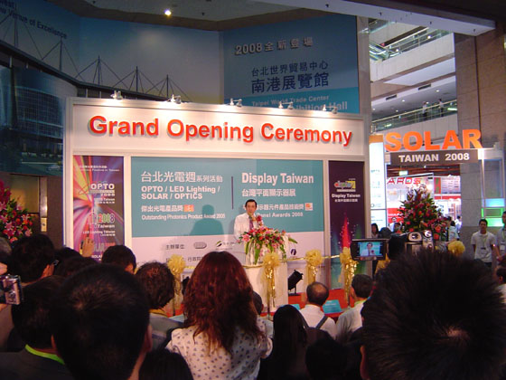 2008平面顯示器展暨臺北國際光電周系列展活動于6月11日拉開序幕, 臺灣地區(qū)領(lǐng)導(dǎo)人馬英九親臨展會現(xiàn)場為展會揭幕。展會為期三天,由PIDA(光電科技工業(yè)協(xié)進(jìn)會)主辦,在臺北世貿(mào)大廈展館展出。