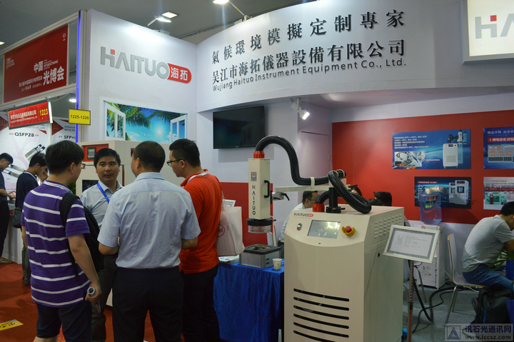 Iccsz訊(編輯:Aiur)CIOE2017第二天,訊石繼續(xù)拜訪會員企業(yè),光器件生產(chǎn)企業(yè)需要性能優(yōu)越的設(shè)備用于器件生產(chǎn),這樣才能保證出貨品質(zhì),吳江市海拓儀器就是這樣一家專業(yè)高速率產(chǎn)品生產(chǎn)設(shè)備的設(shè)備供應(yīng)商。訊石來到海拓儀器展臺(展位號:1225、1226號),只見展臺熙熙攘攘,非常熱鬧。