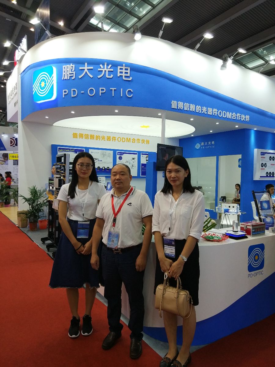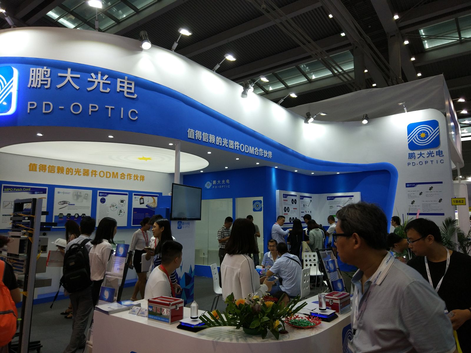 ICCSZ訊 9月6-9日,深圳鵬大光電攜PLC光分路器、Fiber Lens、Fiber Array、楔形/角度球透鏡光纖等系列產(chǎn)品參展2017年第十九屆中國國際光電博覽會,展位位于1號館1B62。當天,訊石走近鵬大光電展臺前時,觀展人員眾多,每一個工作人員都在忙碌著,為來訪客人提供咨詢。