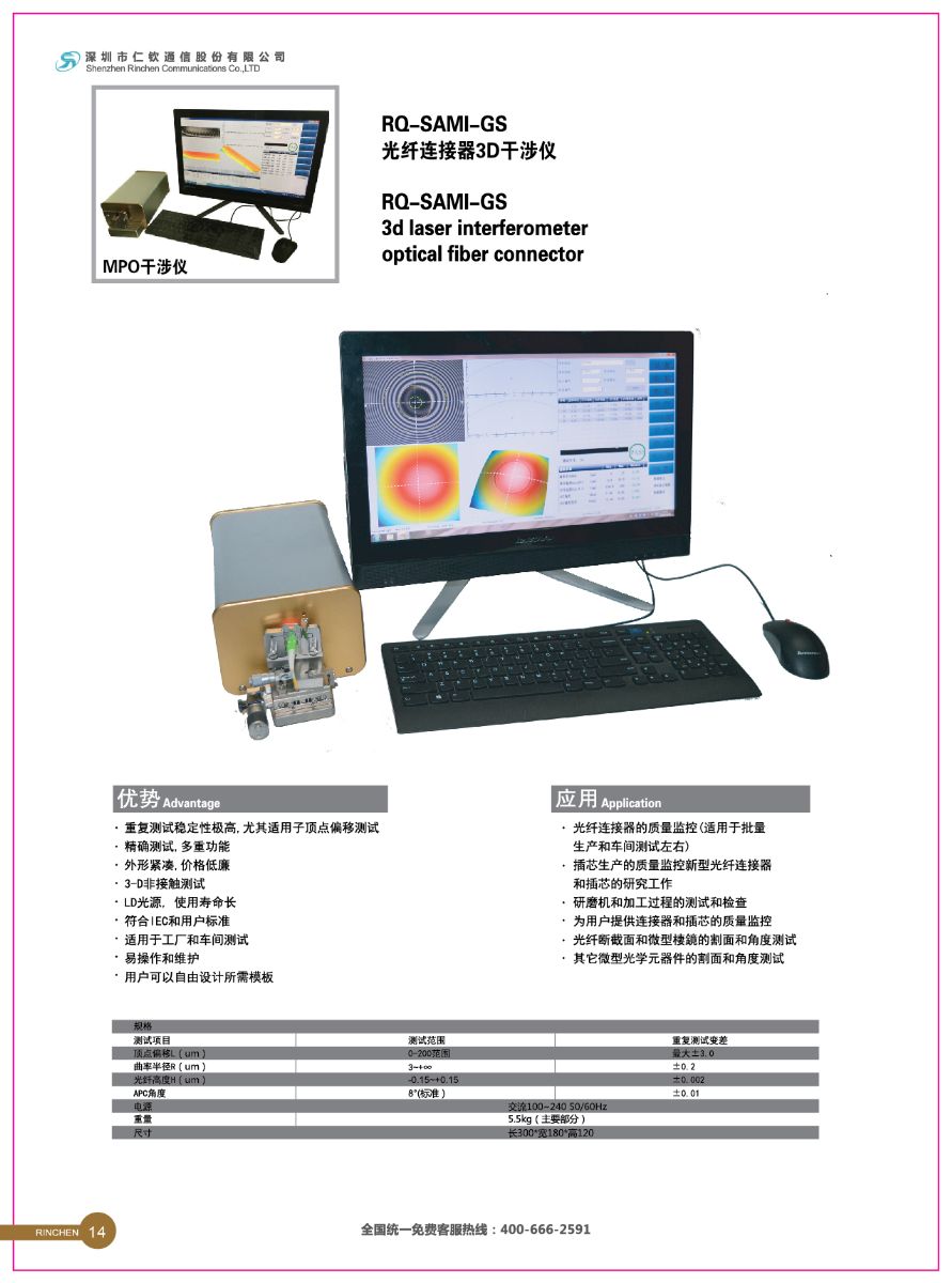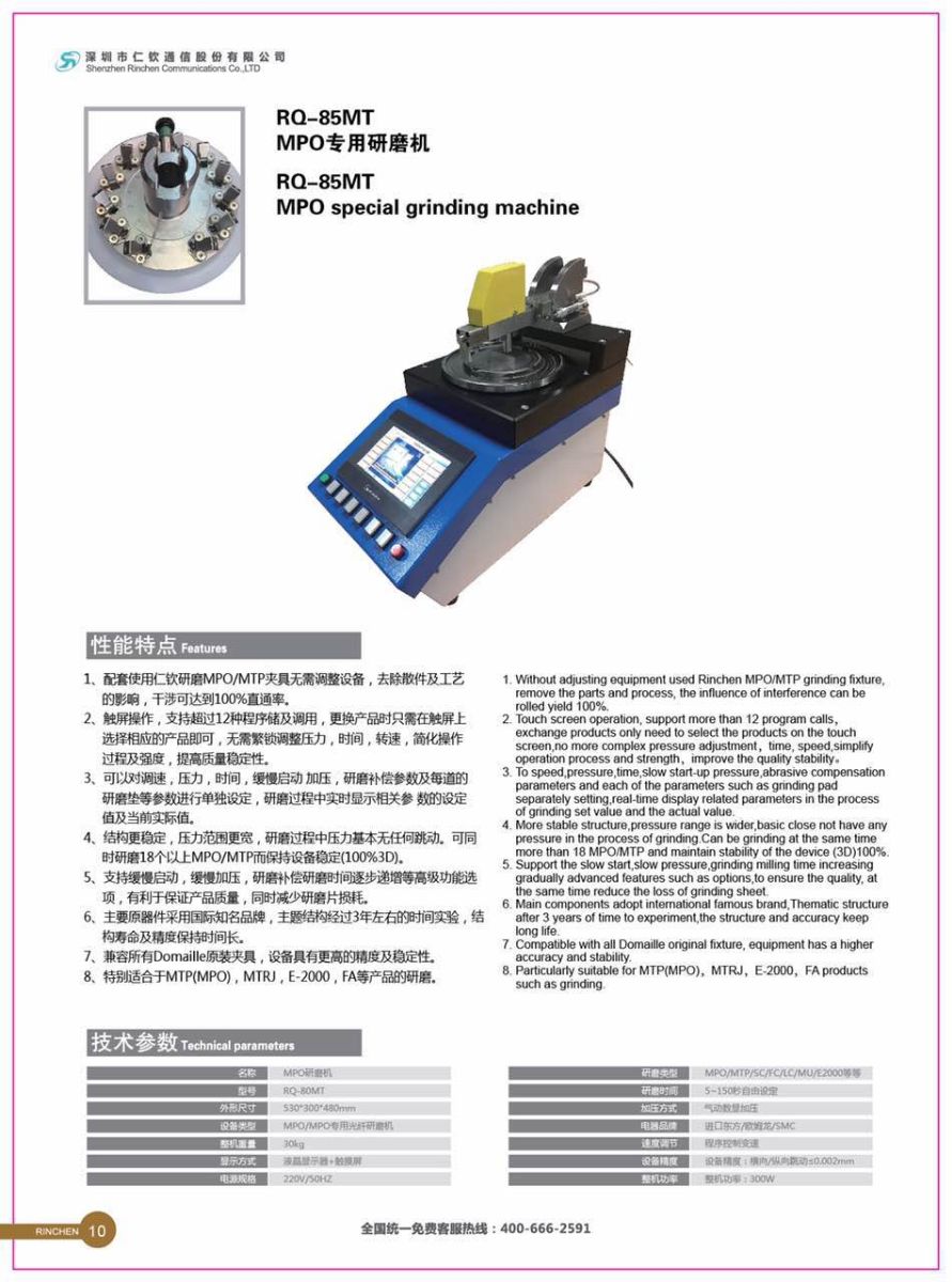 CIOE2017參展的五款自動(dòng)化設(shè)備包括:RQ-BQ300 多芯剝機(jī)、全自動(dòng)SC FC 散件組裝機(jī)、RQ-BLJ100三合一剝纜機(jī)、RQ-85MT MPO 專用研磨機(jī)、RQ-SAMI-GS 光纖連接器3D干涉儀。以下是五款自動(dòng)化設(shè)備相關(guān)情況圖: