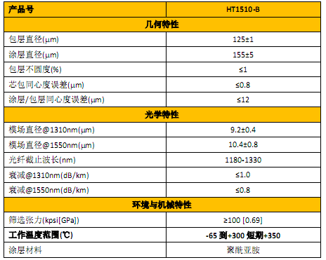 表1 耐高溫單模光纖產(chǎn)品參數(shù)