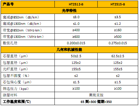表2 耐高溫多模光纖產(chǎn)品參數(shù)