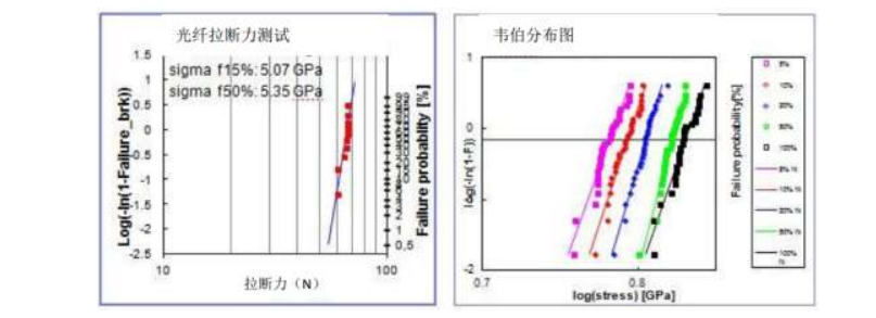 在機(jī)械性能上,長(zhǎng)飛公司的PI光纖測(cè)試的抗拉強(qiáng)度動(dòng)態(tài)疲勞參數(shù)Nd值達(dá)到了25.4,M值達(dá)到了5.35GPa,超過(guò)了IEC對(duì)標(biāo)準(zhǔn)通信光纖的要求指標(biāo),其理論壽命提高了5倍,保障了成纜后的強(qiáng)度和在惡劣環(huán)境中的穩(wěn)定應(yīng)用。