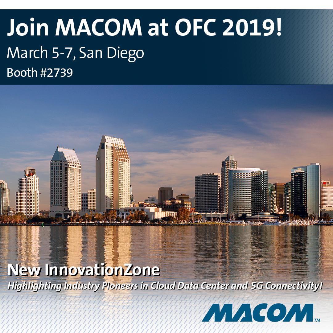 ICCSZ訊 馬薩諸塞州洛厄爾 – 全球領(lǐng)先半導(dǎo)體解決方案供應(yīng)商——MACOM Technology Solutions Inc.(“MACOM”)將于3月5日-7日在2019年美國圣地亞哥光纖通訊網(wǎng)絡(luò)展覽會(huì)及研討會(huì)的#2739號(hào)展位(OFC)展示InnovationZone一系列全新的光電和光子解決方案產(chǎn)品組合。