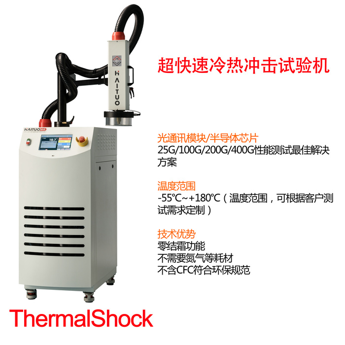 據(jù)海拓介紹,新產(chǎn)品桌上型TEC高低溫沖擊箱廣泛應(yīng)用于光模塊、芯片、傳感器等微電子研發(fā)、生產(chǎn)所用的高溫、常溫、低溫等三溫可靠性及性能測試最佳解決方案。被測試樣品在瞬間經(jīng)極高溫及極低溫的連續(xù)環(huán)境下忍受的反復(fù)抵抗程度,得以在最短時間內(nèi)檢測樣品因熱脹冷縮所引起的化學(xué)變化和物理傷害,進(jìn)而確認(rèn)產(chǎn)品品質(zhì)。新產(chǎn)品特點,其采用國內(nèi)領(lǐng)先技術(shù),自主研發(fā)精準(zhǔn)控制系統(tǒng),在更低能耗下高效地提升生產(chǎn)效率。