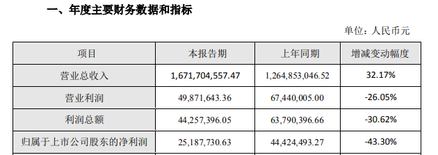 ICCSZ訊(編輯:Jane)2月28日,廣東通宇通訊股份有限公司發(fā)布2019 年度業(yè)績快報 。 報告顯示,2019 年公司實現(xiàn)營業(yè)收入 16.72億元元,同比增長 32.17%; 營業(yè)利潤 49,871,643.36 元,較上年同期下降 26.05%,利潤總額 44,257,396.05 元,較上年同期下降 30.62%,歸屬上市股東凈利潤 25,187,730.63 元,同比下降 43.3%。