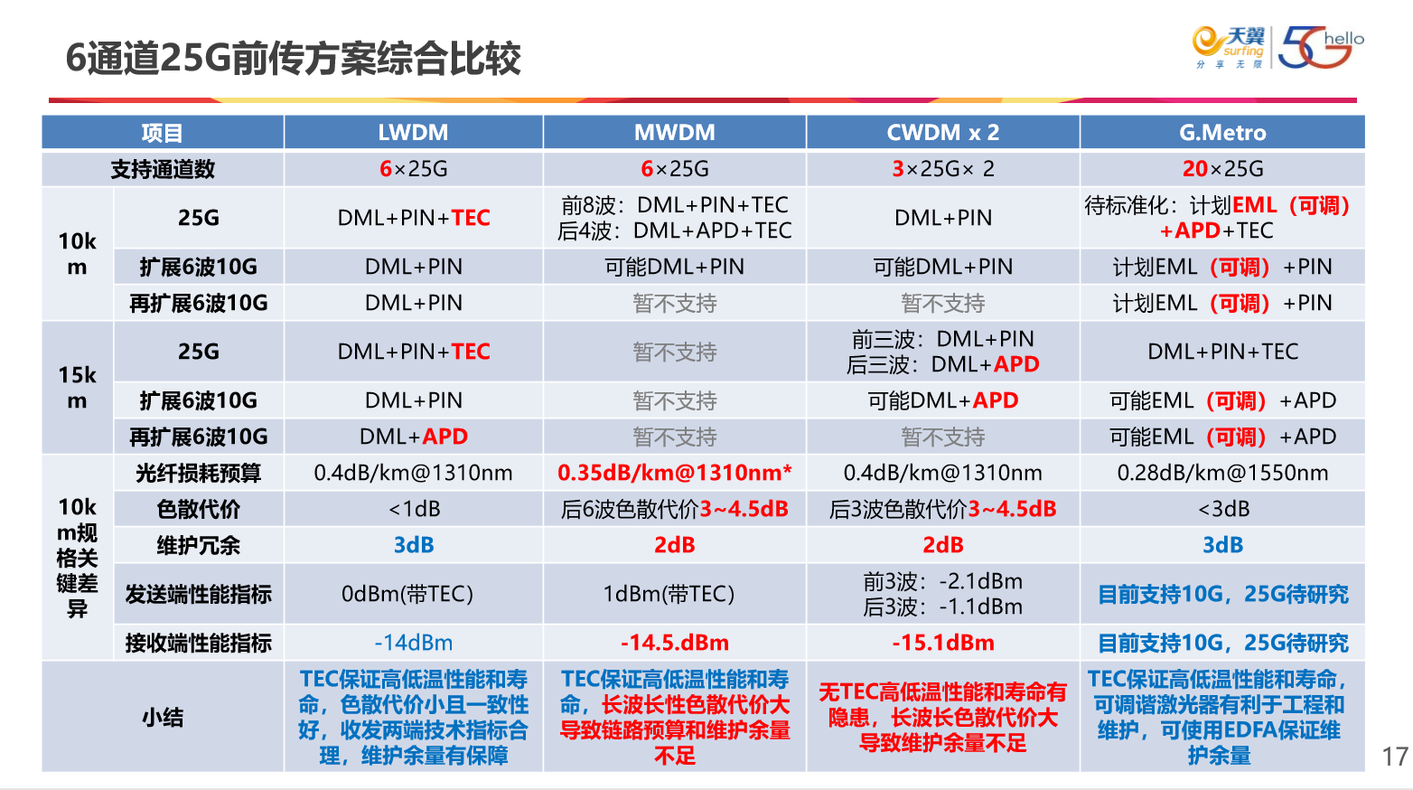 在5G對光模塊的需求,前傳方面涉及到多種技術(shù)。唐博士認為,當前DRAN場景下BiDi是很明確的,而CRAN的場景下,以CWDM為主,將來有可能為LWDM或CWDM,主要看產(chǎn)業(yè)的發(fā)展與成本?;貍鞣矫?,主要第一級回傳或接入層主要為25G、50G,匯聚及往上可能采用100G,主要采用低成本相干技術(shù),要求 80km及以上,將來可能采用400G。