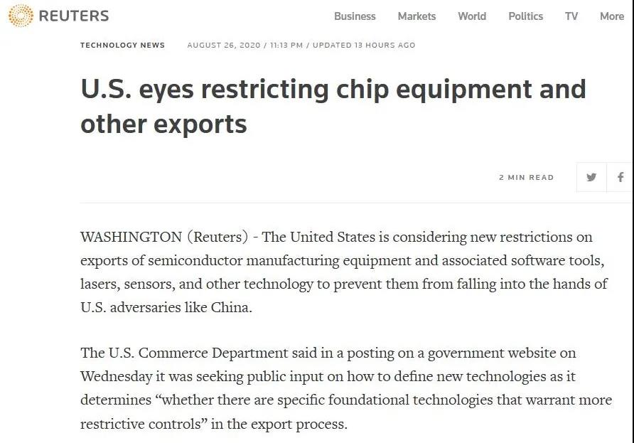 據(jù)路透報道,當(dāng)?shù)貢r間周三,美國商務(wù)部在政府網(wǎng)站上發(fā)布消息稱,正在就如何定義新技術(shù)征求公眾意見,以確定在出口過程中“是否存在某些特定的基礎(chǔ)技術(shù)需要實施更嚴格的控制措施”,以避免新興技術(shù)外流被敵對國作軍事用途的可能。