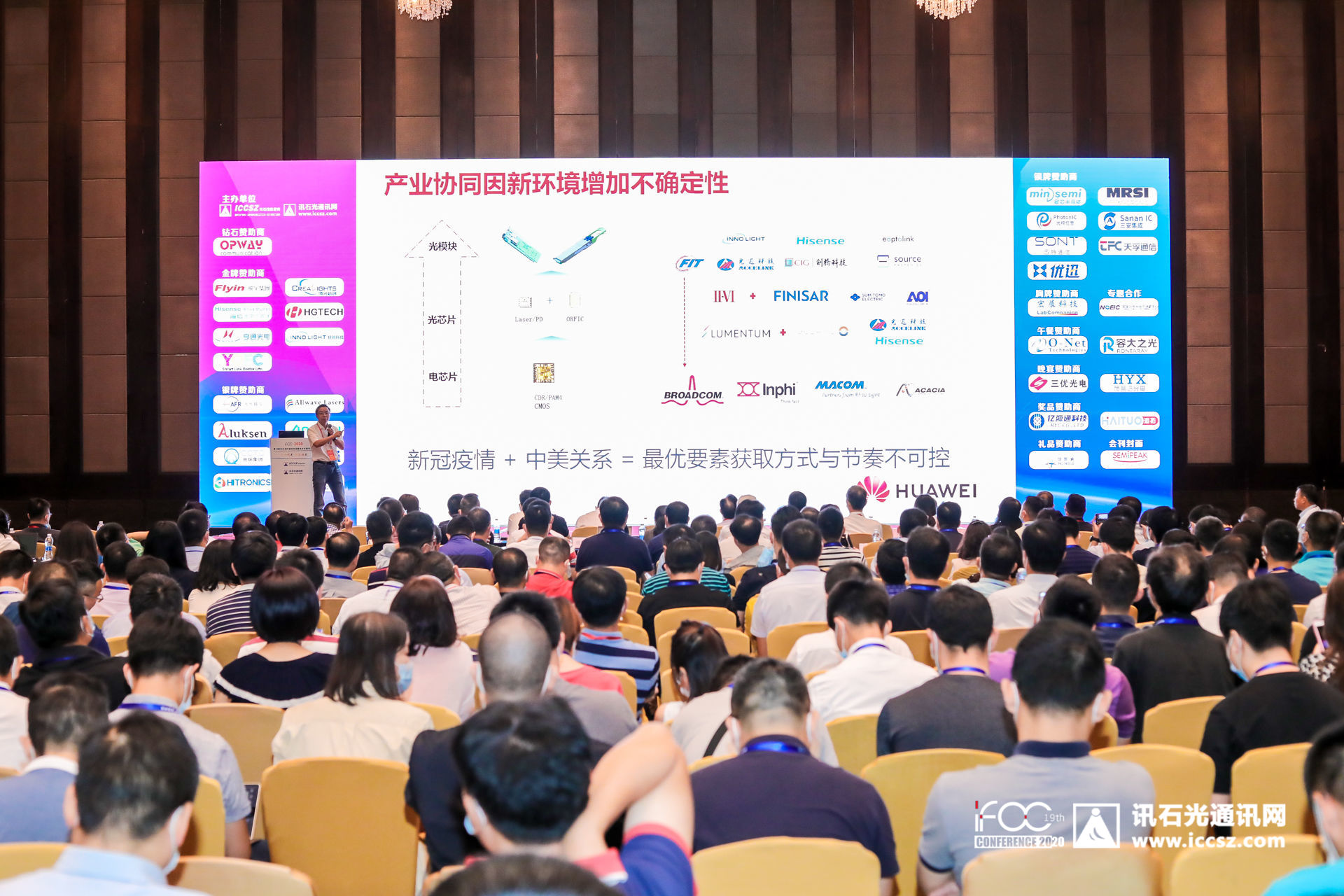 PAM-4里最重要的DSP芯片需要硬核的設計能力和先進工藝,DSP芯片占到模塊功耗的50%,占成本的30%以上。從光模塊到光芯片再到電芯片,代表性企業(yè)越來越少。中國企業(yè)目前在模塊領域有較大影響力,但在電芯片領域影響力不足。目前在新冠疫情加中美關系的影響下,最優(yōu)要素的獲取方式與節(jié)奏不可控。