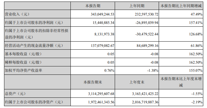 同時(shí),通宇通訊發(fā)布了2021第一季度報(bào)告,報(bào)告期內(nèi),營(yíng)收3.43億元,同比增長(zhǎng)47.49%;歸屬于上市公司股東凈利潤(rùn)1544.09萬(wàn)元,同比增長(zhǎng)157.41%。