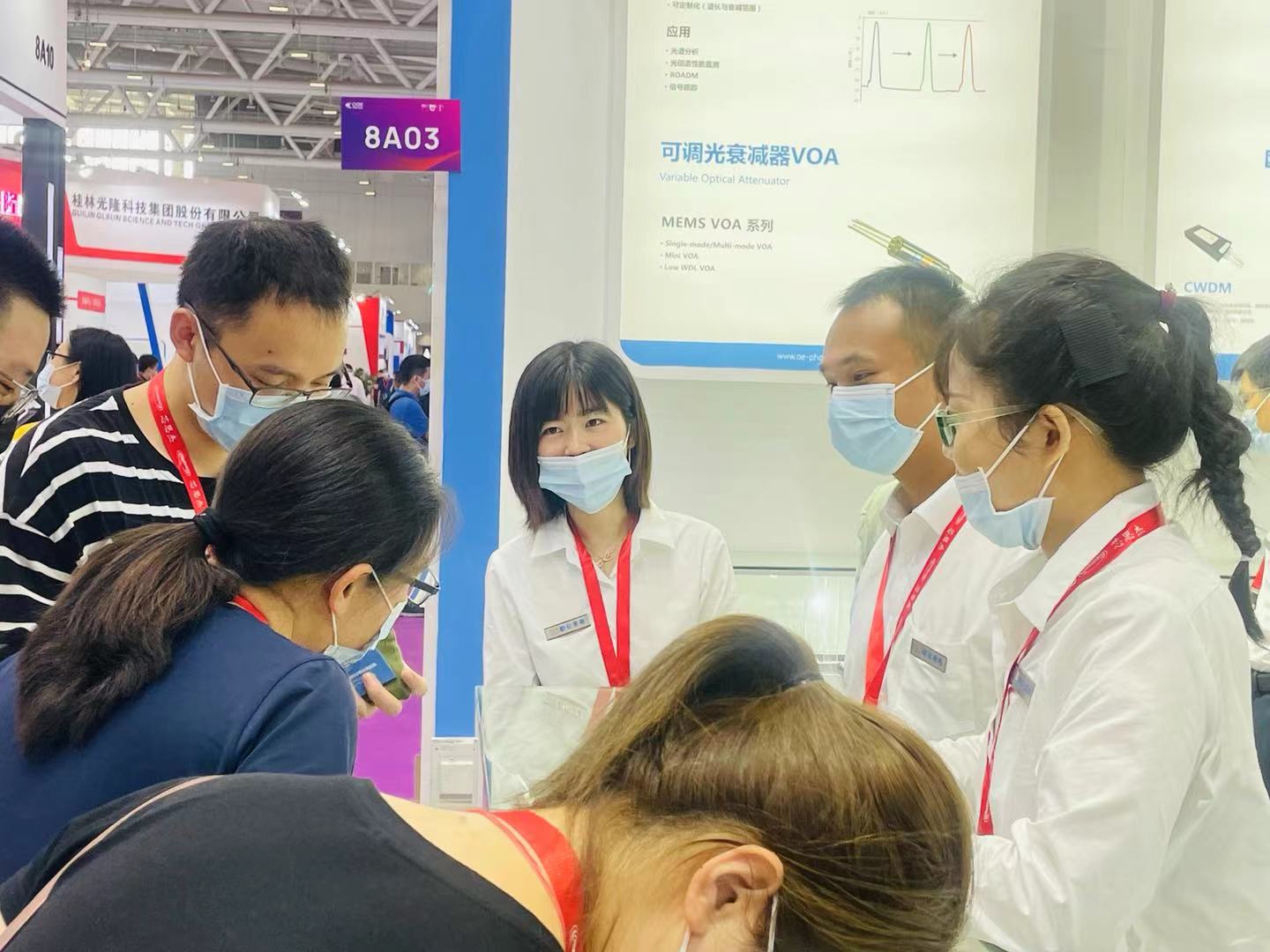 高總向訊石介紹道,今年展出產(chǎn)品主要是濾波器、光開光和光衰減器等三大系列產(chǎn)品,從今天展會(huì)第一天客戶詢問(wèn)的情況來(lái)看,目前最受歡迎的是光開光和可調(diào)濾波器。我們有信心,這次推出的幾款新產(chǎn)品在國(guó)內(nèi)市場(chǎng)具有吸引力,特別是1x128非級(jí)聯(lián)MEMS光開關(guān)為行業(yè)首發(fā),采用MEMS技術(shù)中的微轉(zhuǎn)鏡技術(shù),并結(jié)合自主研發(fā)生產(chǎn)的高密度光扇出結(jié)構(gòu),突破了傳統(tǒng)MEMS非級(jí)聯(lián)光開關(guān)的通道數(shù)限制,具有響應(yīng)速度快、插入損耗低、隔離度高、壽命長(zhǎng)等特點(diǎn),在同類產(chǎn)品中極具競(jìng)爭(zhēng)力。目前已受到行業(yè)大企業(yè)關(guān)注。