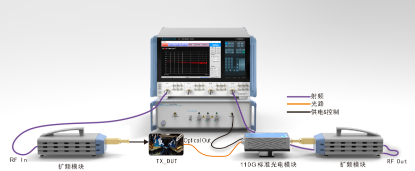 該方案集成電-光、光-電、光-光三類元器件的頻域參數(shù)測量,測量頻率最高可達(dá)110 GHz,測量波長覆蓋C波段 / L波段 / 1310 nm??蓪?shí)現(xiàn)用戶對于直調(diào)激光器、電光調(diào)制器、光電探測器、光微環(huán)、光柵等光電芯片、器件和模塊的測量,支持S參數(shù)、截止頻率、差分/共模參數(shù)、延時參數(shù)、交調(diào)/互調(diào)參數(shù)、噪聲系數(shù)等關(guān)鍵數(shù)據(jù)的獲取,適用于光電元器件研發(fā)、生產(chǎn)和應(yīng)用的整個周期鏈。方案已應(yīng)用于華為、海思光電子、之江實(shí)驗(yàn)室、國家創(chuàng)新中心等單位。