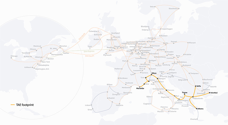 TAE是EXA和Trans Adriatic Pipeline Ag (TAP)組建的合資企業(yè),TAP擁有一條連接里海和意大利南部的重要新天然氣管道。該管道于2020年完工,通過阿爾巴尼亞和希臘連接意大利南部的梅倫杜尼奧,并在基普伊與土耳其邊境相連。該項目創(chuàng)建了一個獨特的光纖網(wǎng)絡(luò),連接米蘭、地拉那、雅典、索菲亞和伊斯坦布爾,具有高質(zhì)量、高性能和超可靠的數(shù)字基礎(chǔ)設(shè)施。