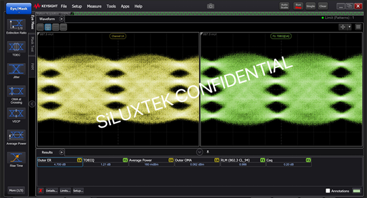 展會現(xiàn)場演示的DR8 800G硅光模塊,其性能極大超越了IEEE P802.3df D2.0對800GBASE-DR8的光接口規(guī)范要求, TX眼圖如下: