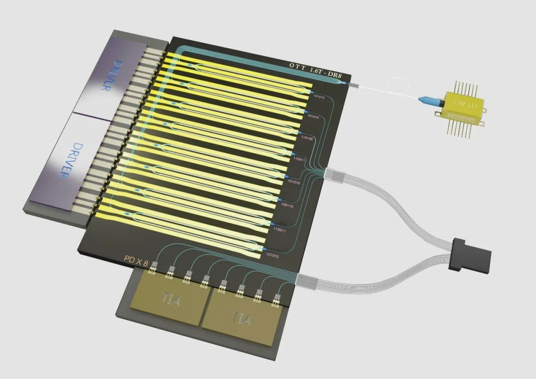 8*200G-1.6T 硅基混合集成芯片(示意圖)
