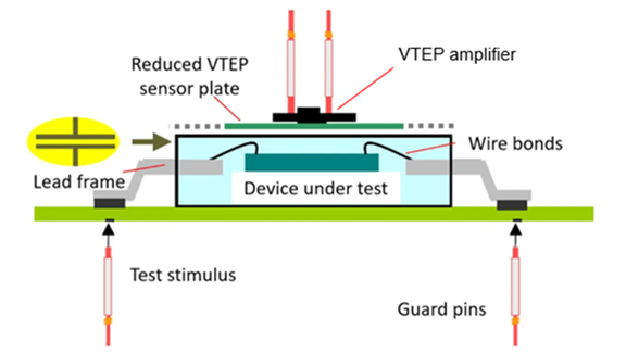 圖 2:使用 VTEP 的四方扁平封裝 (QFP) 鍵合線測試裝置的橫截面圖