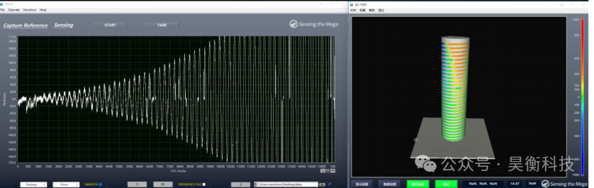 圓柱體上部施加壓力,同時對中部進行降溫處理;軟件同步采集光纖解調儀的傳感數據,實時生成三維云圖,清晰呈現(xiàn) “上部高應變、中部低溫” 的場分布特征。