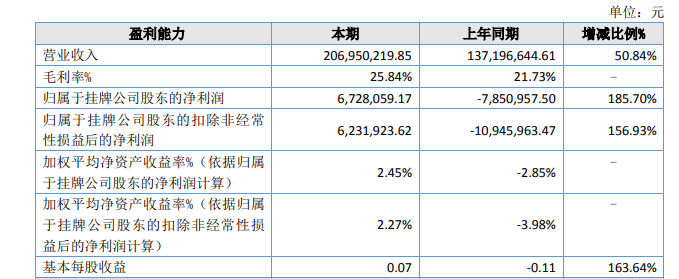 ICC訊 深圳市恒寶通光電子股份有限公司(證券代碼:832449)日前發(fā)布了2025年年度報(bào)告。恒寶通在報(bào)告期內(nèi)實(shí)現(xiàn)營(yíng)業(yè)收入2.07億元,較上年的1.37億元增長(zhǎng)50.84%;歸屬于掛牌公司股東的凈利潤(rùn)為672.81萬(wàn)元,較上年同期虧損785.10萬(wàn)元實(shí)現(xiàn)扭虧為盈,同比增長(zhǎng)185.70%。