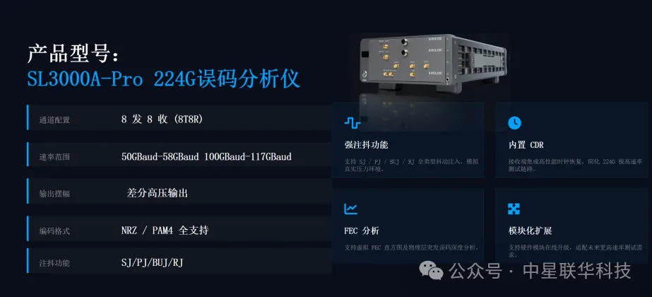 針對(duì)AI浪潮下1.6T數(shù)據(jù)傳輸?shù)耐袋c(diǎn),水哥詳細(xì)介紹了這款224G高級(jí)注抖誤碼分析儀(SL3000A PRO-224G系列)的四大核心特色: