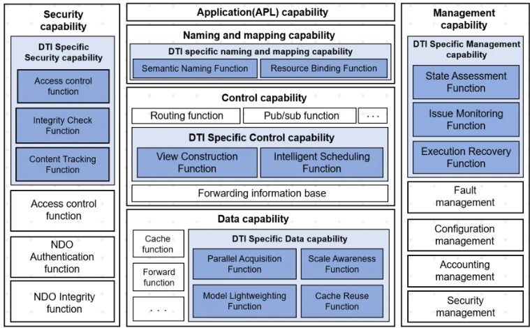 面向制造、交通、醫(yī)療、能源、城市治理等關(guān)鍵領(lǐng)域,智能化業(yè)務(wù)的部署對(duì)AI模型的訓(xùn)練與推理方式提出了差異化要求。一方面,為滿足低時(shí)延響應(yīng)與就近數(shù)據(jù)處理需求,AI推理與決策功能需在終端、邊緣與云側(cè)之間實(shí)現(xiàn)合理分工與協(xié)同;另一方面,分布式AI訓(xùn)練與推理過程涉及數(shù)據(jù)、模型更新以及中間結(jié)果在多節(jié)點(diǎn)間的持續(xù)交換與復(fù)用,這對(duì)網(wǎng)絡(luò)的支撐能力提出了更高要求。在此背景下,6G與AI的深度融合正在成為新一代信息基礎(chǔ)設(shè)施的關(guān)鍵支點(diǎn):AI賦予網(wǎng)絡(luò)更強(qiáng)的感知與自主優(yōu)化能力,6G則為AI在端、邊、云之間的協(xié)同訓(xùn)練與實(shí)時(shí)推理提供更廣覆蓋、更低時(shí)延、更高可靠的連接底座。針對(duì)上述應(yīng)用需求,高研院研究團(tuán)隊(duì)依據(jù)此前提出的6G信息中心網(wǎng)絡(luò)支持機(jī)器學(xué)習(xí)的總體框架,并充分結(jié)合當(dāng)前分布式訓(xùn)練與推理不斷演進(jìn)的新趨勢(shì),聚焦跨域協(xié)同執(zhí)行、數(shù)據(jù)對(duì)象協(xié)同處理以及任務(wù)連續(xù)性保障等關(guān)鍵環(huán)節(jié),在既有功能框架基礎(chǔ)上,進(jìn)一步分析分布式訓(xùn)練與推理各階段對(duì)命名解析、數(shù)據(jù)組織、控制調(diào)度及執(zhí)行保障等方面提出的增強(qiáng)需求,系統(tǒng)梳理相關(guān)附加能力,并形成面向分布式訓(xùn)練與推理場(chǎng)景的功能補(bǔ)充說明。通過標(biāo)準(zhǔn)化手段構(gòu)建可對(duì)齊、可復(fù)用、可實(shí)施的支撐框架,為AI智能業(yè)務(wù)在6G時(shí)代的穩(wěn)定部署與規(guī)模推廣奠定堅(jiān)實(shí)基礎(chǔ)。相關(guān)標(biāo)準(zhǔn)的制定與推進(jìn),對(duì)提升我國在未來網(wǎng)絡(luò)領(lǐng)域的國際話語權(quán)和產(chǎn)業(yè)競(jìng)爭(zhēng)力、保障國家信息基礎(chǔ)設(shè)施安全自主可控具有重要戰(zhàn)略意義。同時(shí),這也將為智慧醫(yī)療、智能交通、工業(yè)互聯(lián)網(wǎng)等民生重點(diǎn)領(lǐng)域的數(shù)字化轉(zhuǎn)型提供底層技術(shù)支撐,切實(shí)賦能千行百業(yè)、惠及千家萬戶。